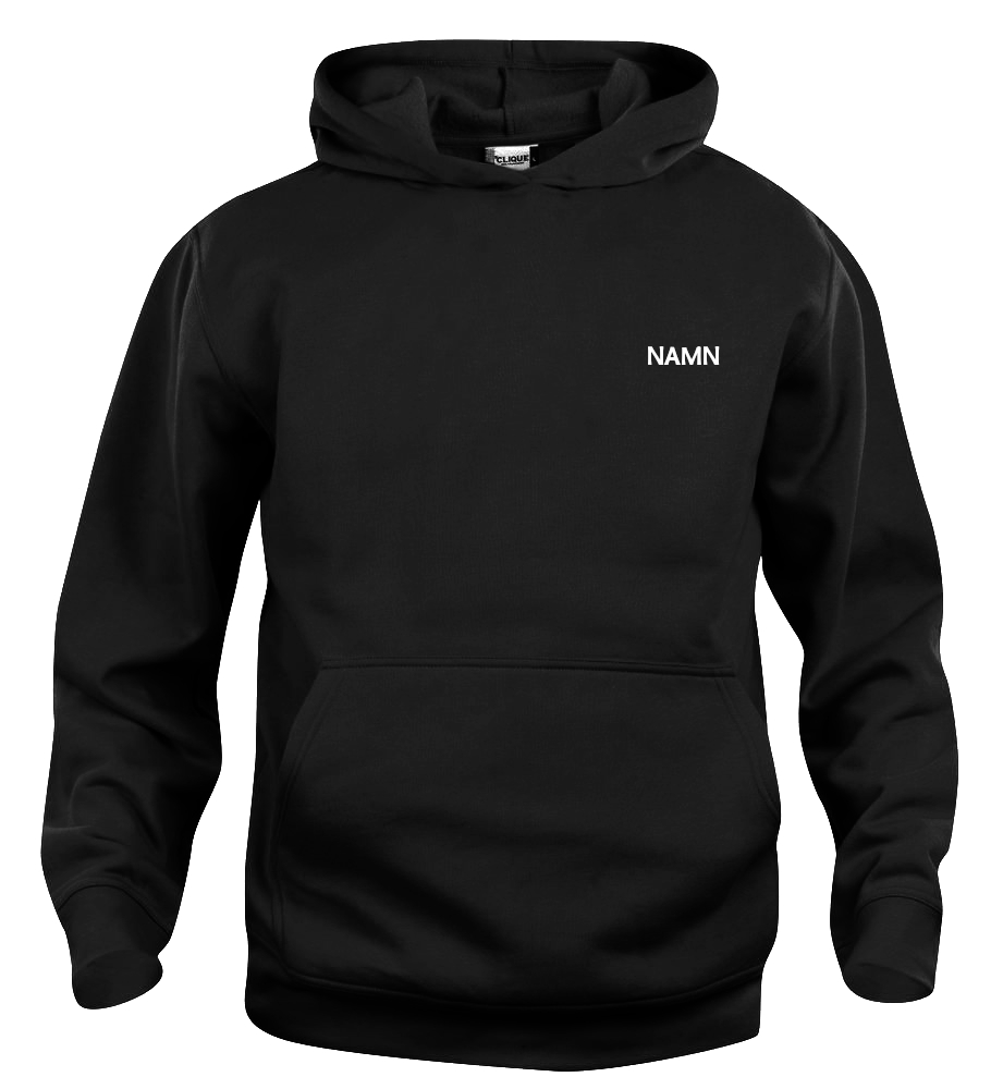 Hoodie i unisexmodell med stort föreningstryck på ryggen och namntryck på bröstet, finns i junior- och seniorstorlekar och fem olika färger!