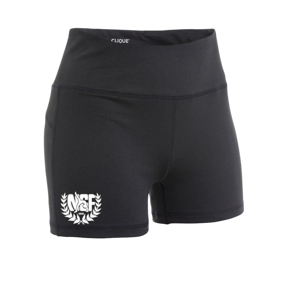 Hotpants för tjej och dam i polyester, svarta med vit föreningslogga på höger lår.
